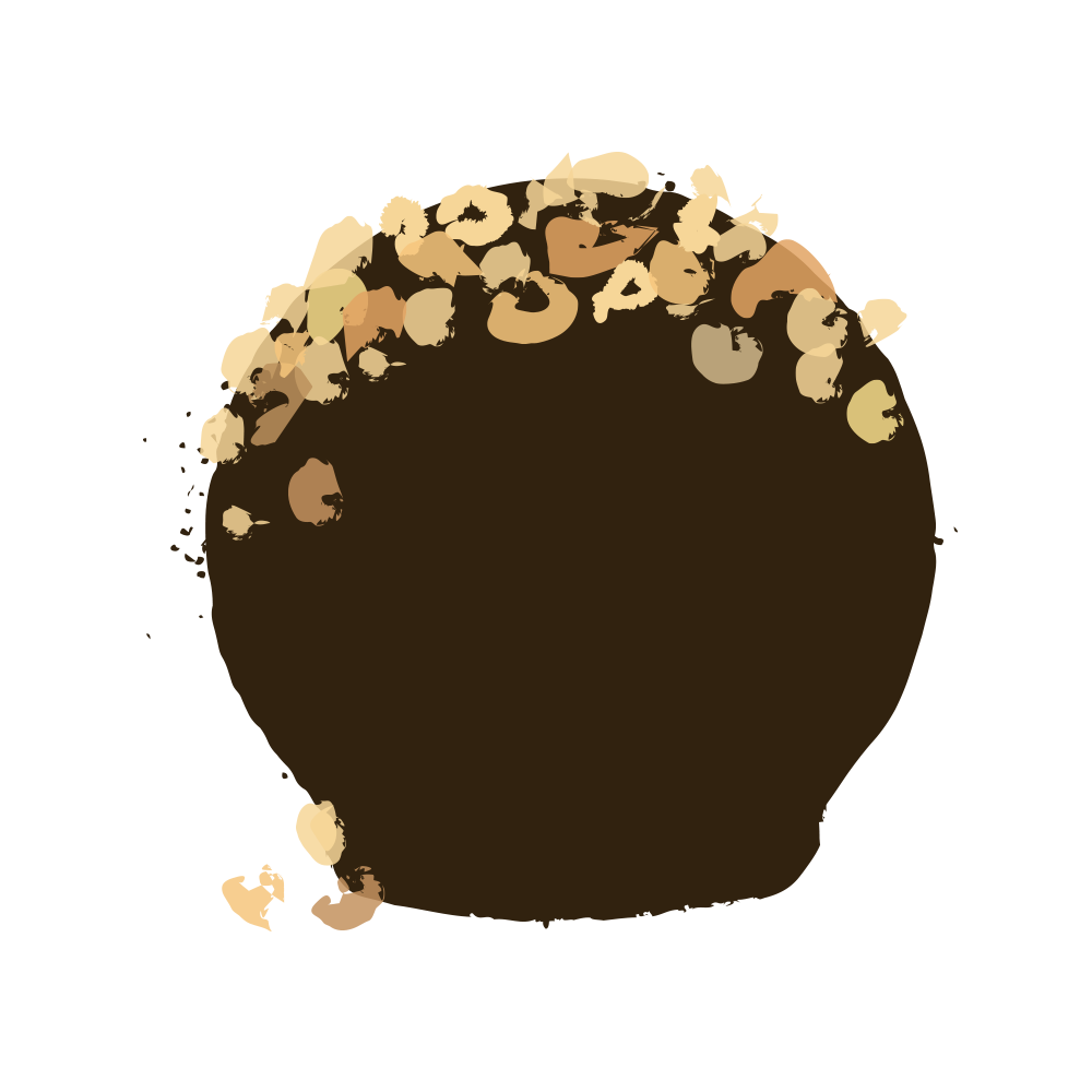 Hjemmelavet luksus trøffel, fyldt med flydende saltkaramel (14%), overtrukket med mørk chokolade og drysset med karameliserede nødder. Alle trøfler er hånddyppet her i hjertet af Thy og smager helt fantastisk.